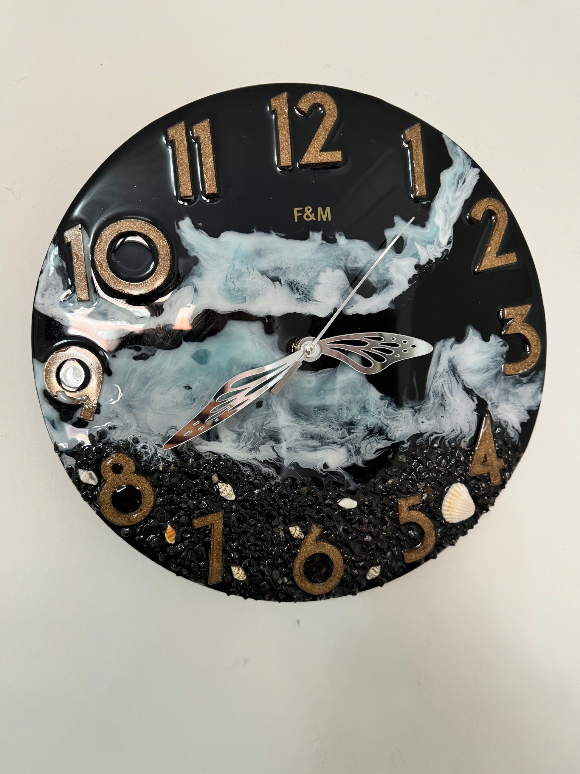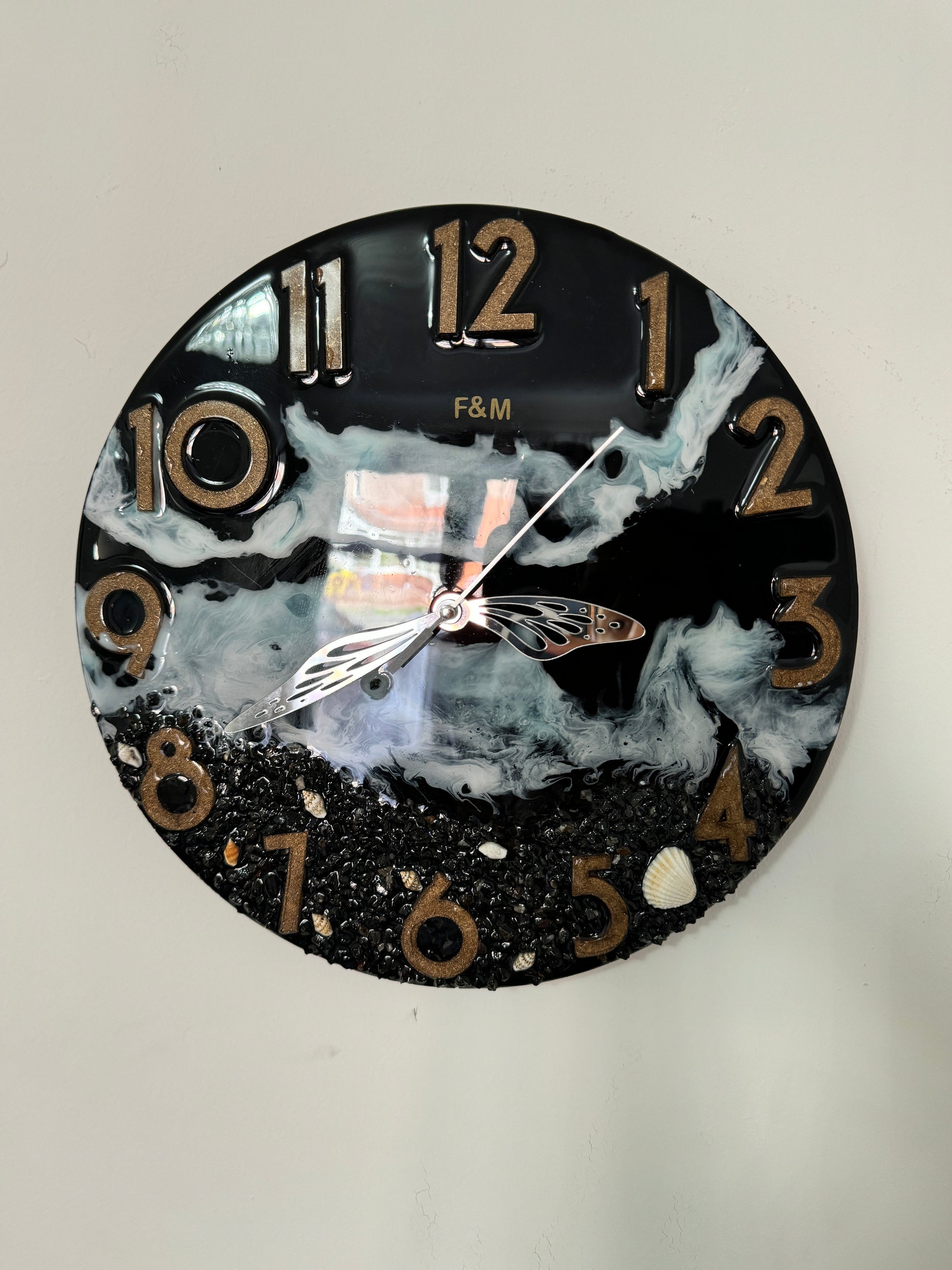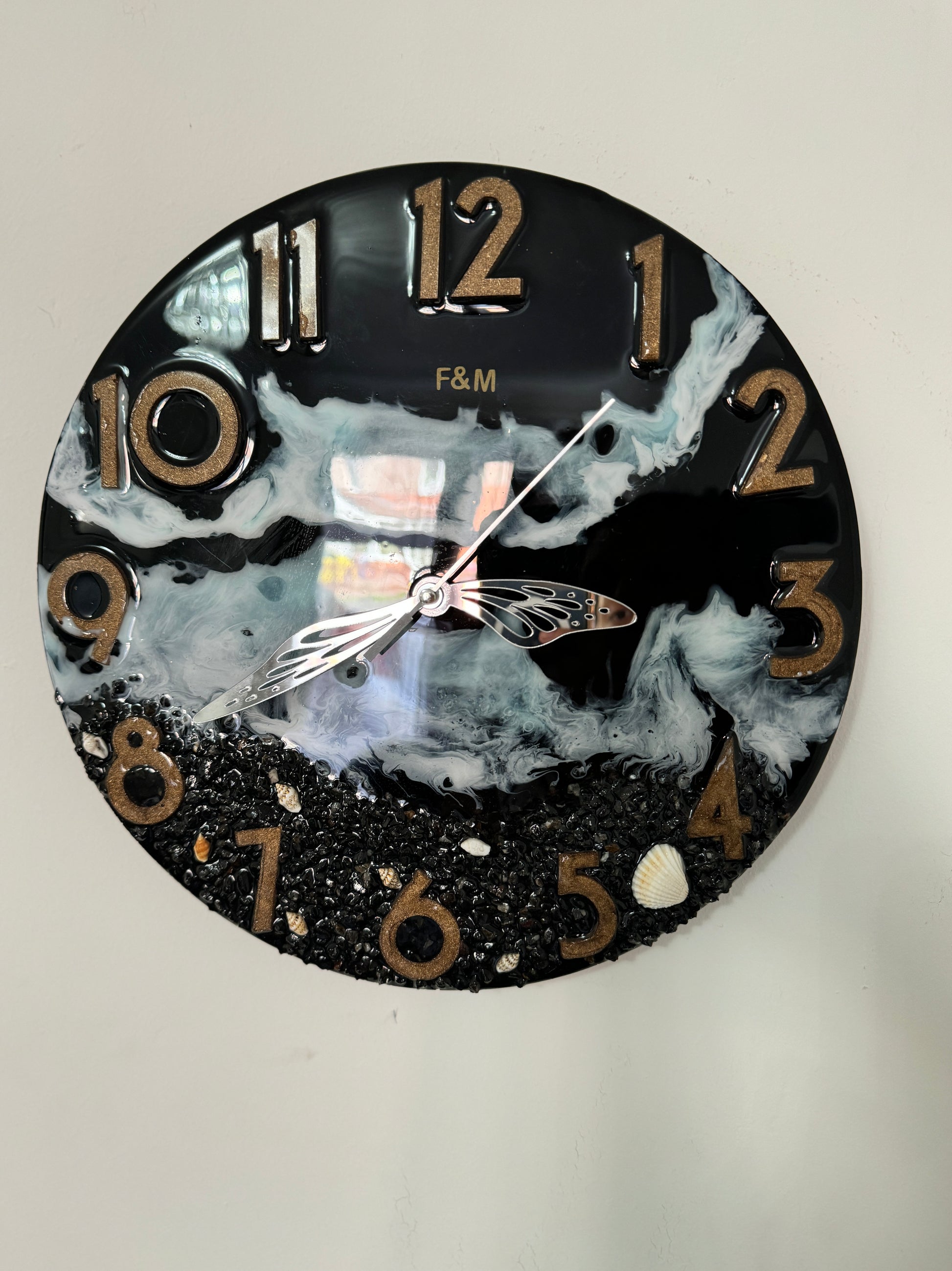 This clock is made of resin, a durable and lang-lasting material that can withstand wear and tear. The clock is made on order, which means that it can be customized to the buyer's specific preferences and needs.the clock can be made in any colour that matches their home decor or personal style.