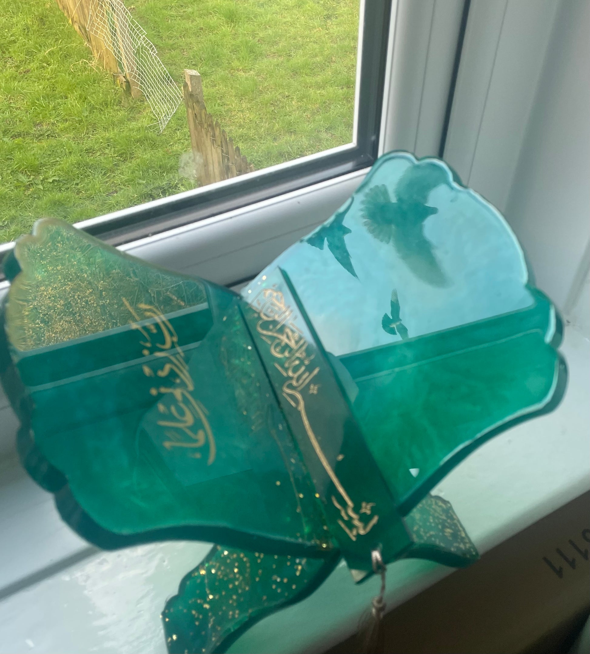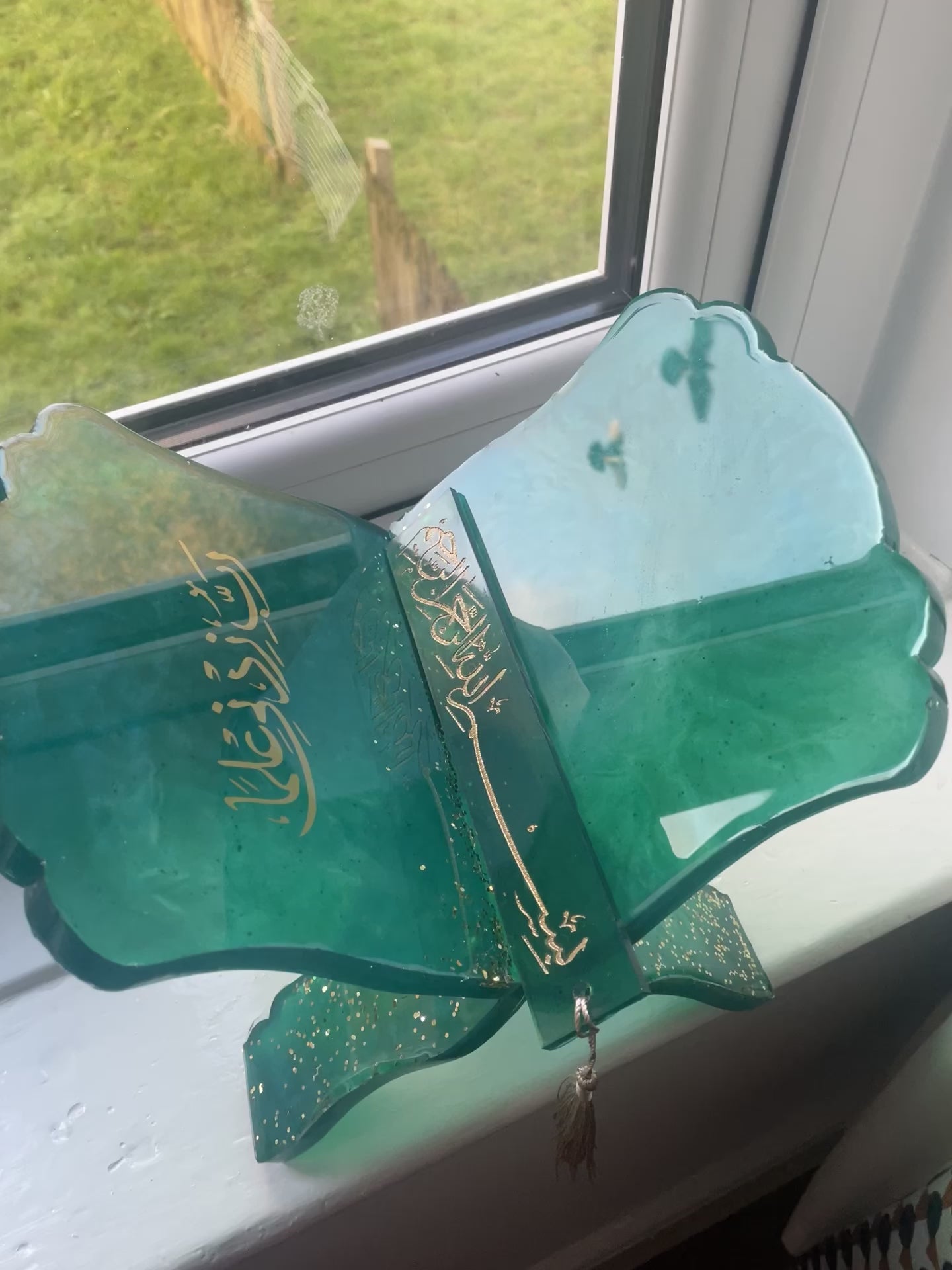 The Quran Rehal is a custom-made product that is designed to provide a cpmfortable and convenient way to read the quran.The rehal is made on order, which means that the colour & pattern of the rehal are poured according to the client's preference.