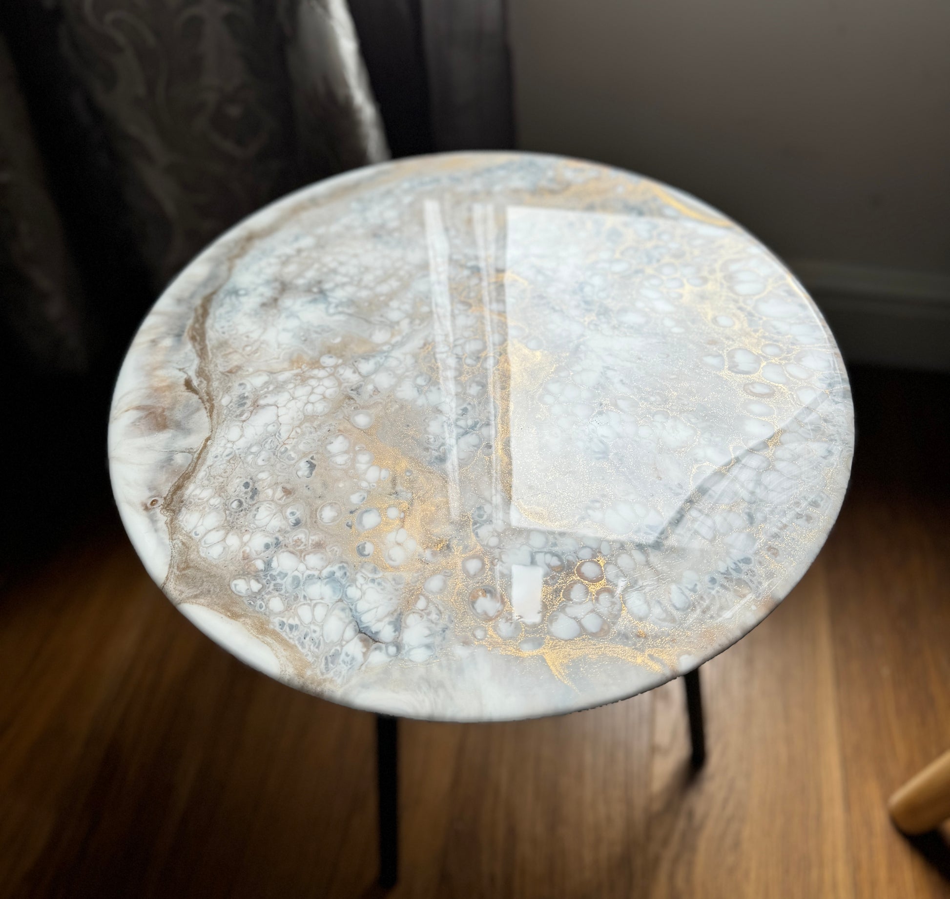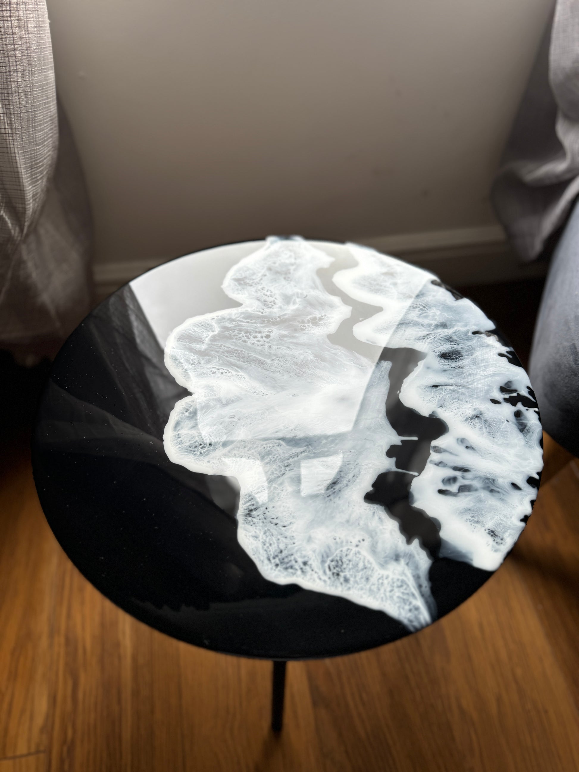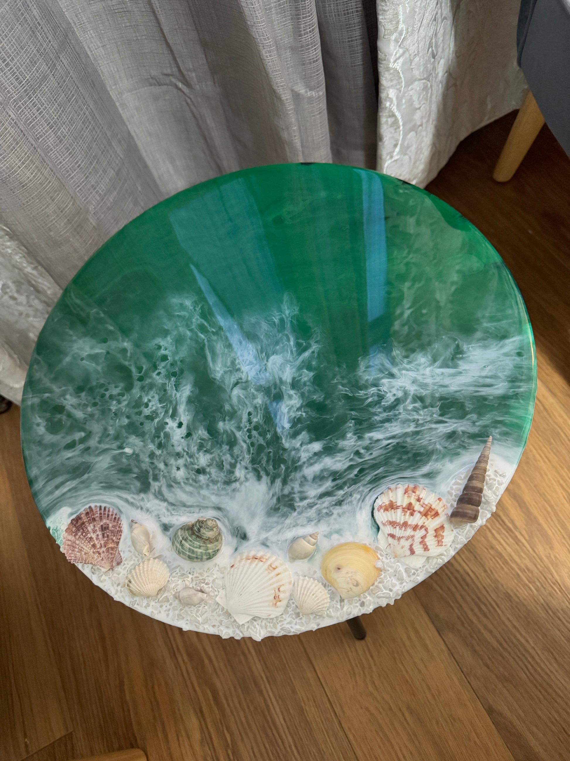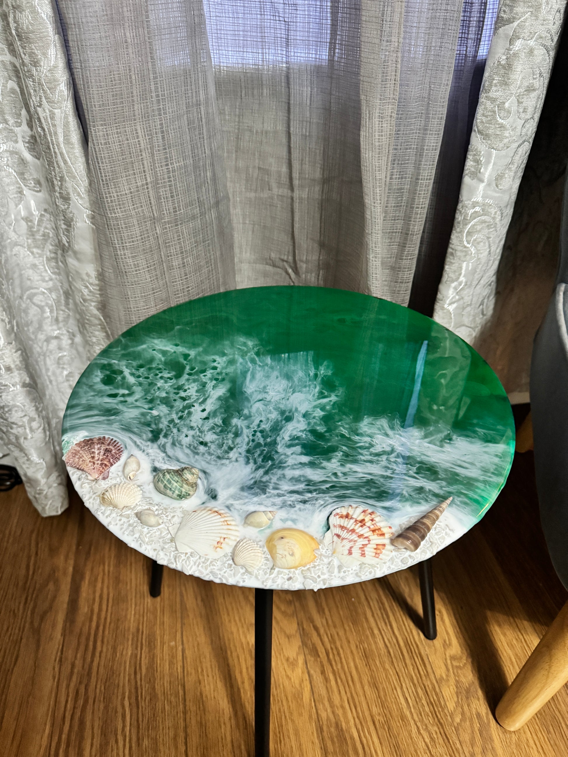 Introducing our resin table with a sea effect design, a perfect addition to your home decor. This table is made of resin, a durable and lightweight material that is easy to clean and maintain. The sea effect design adds a unique and eye-catching element to the table, making it stand out from other tables.